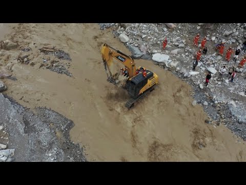 Rescue and relief work underway in flood-hit Sichuan village