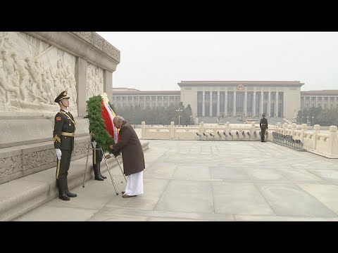 Sri Lankan PM lays wreath at Monument to the People's Heroes in Beijing